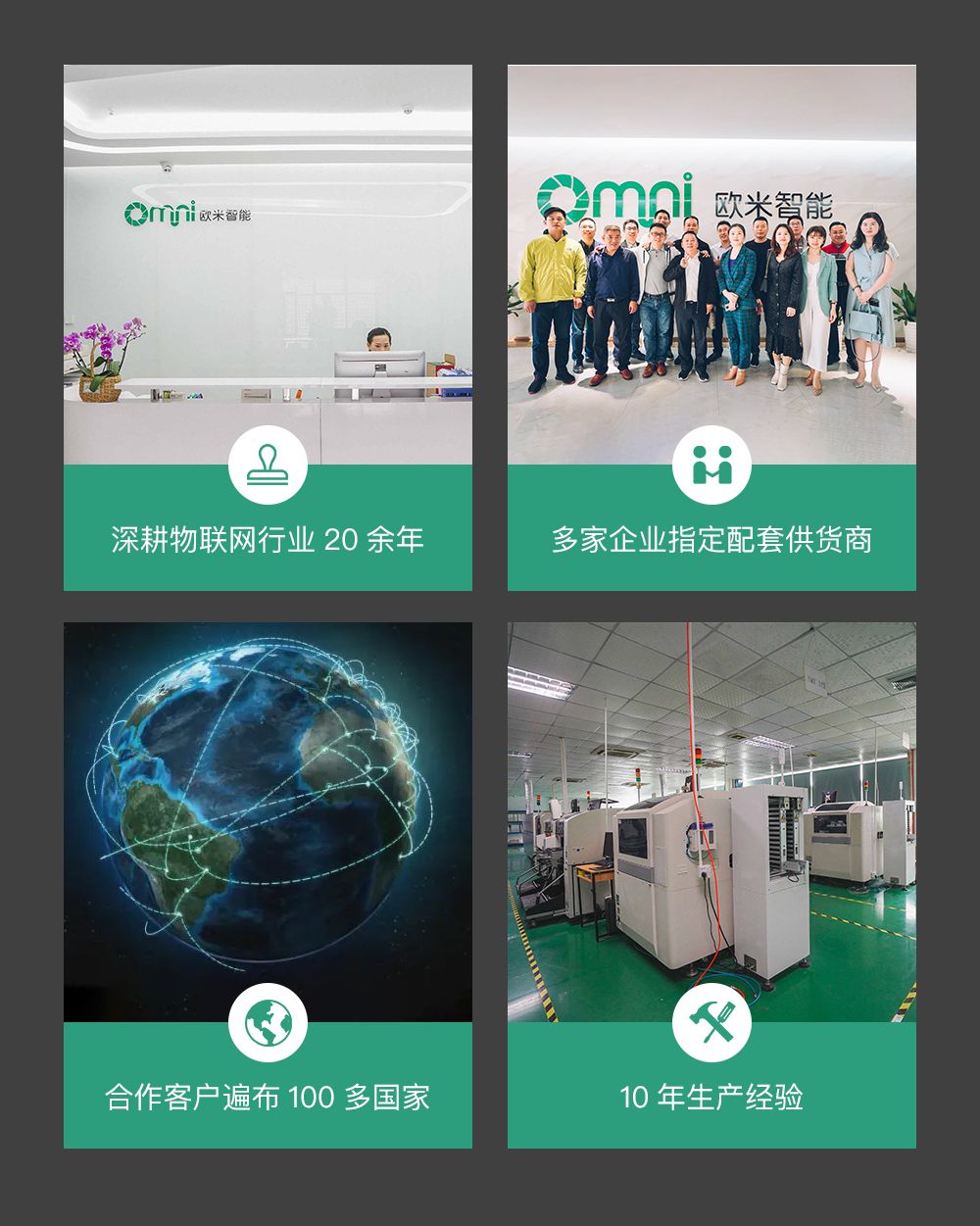 深圳歐米智能科技有限公司位于廣東省深圳市龍崗區(qū)南灣街道布瀾路21號(hào)聯(lián)創(chuàng)科技園3期31棟11樓,是一家專注于物聯(lián)網(wǎng)核心技術(shù)研發(fā)及應(yīng)用的國家級(jí)高新技術(shù)企業(yè)。